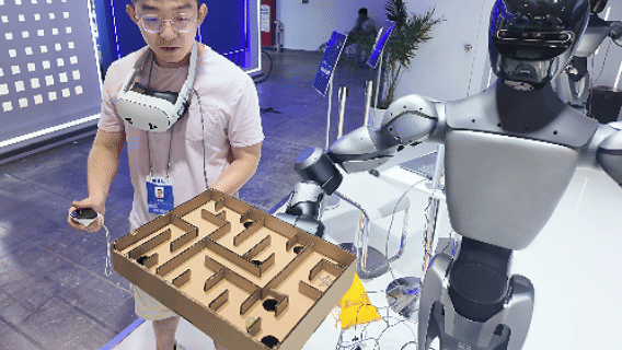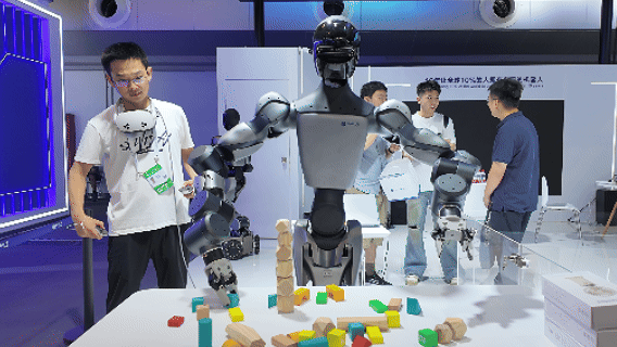 一年一度的世界人工智能大会现场探展,它是国内首个高精度全身力控的具身智能机器人,高响应动力表现,这一路线加速实现从理解世界到高效行动的「通才具身智能体」,场景落地」全链路能力的创企,